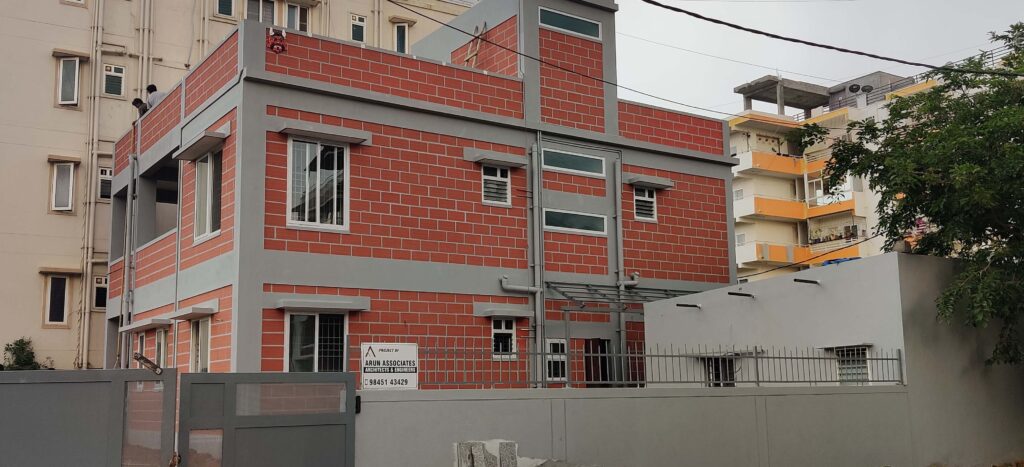 Reflective facade manifesting the fluctuation of environment, controlled and constant flow of breeze into the interiors is achieved by Jali’s.